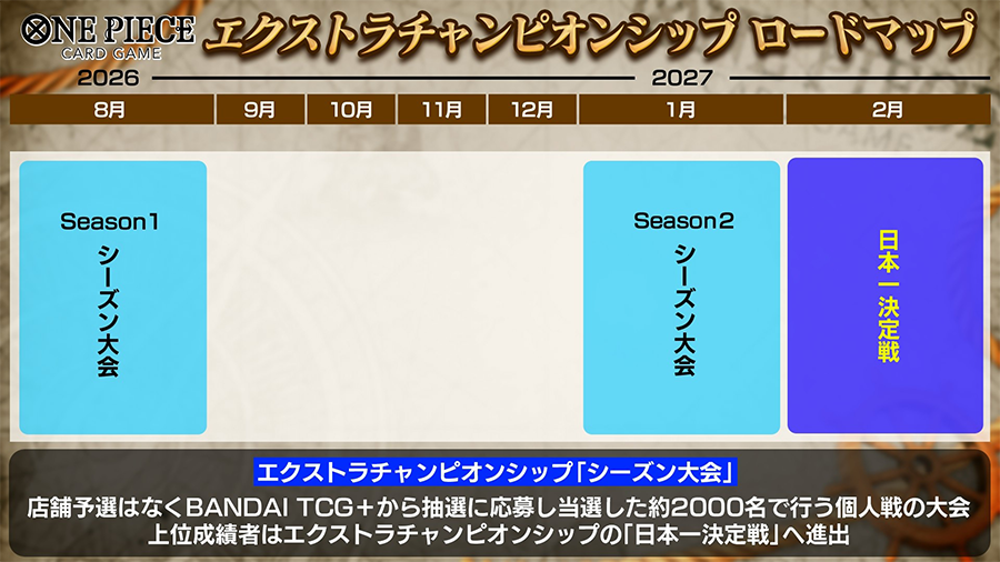 「エクストラチャンピオンシップ」には店舗予選などはなく、バンダイTCG+から応募ができ抽選で当選した約2000名で行われる 個人戦です。そして上位成績者が「エクストラチャンピオンシップ」の「日本一決定戦」に参加することができます。
