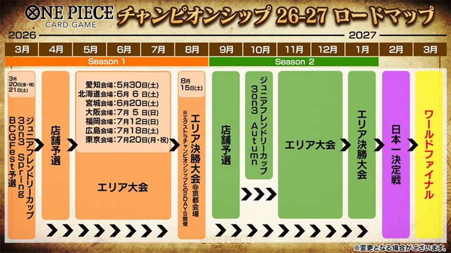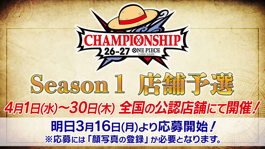 チャンピオンシップ26-27 Season1の店舗予選が3月16日(月)より応募スタートいたしました。また、4月の店舗予選よりエリア大会権利獲得人数が変更になります。
